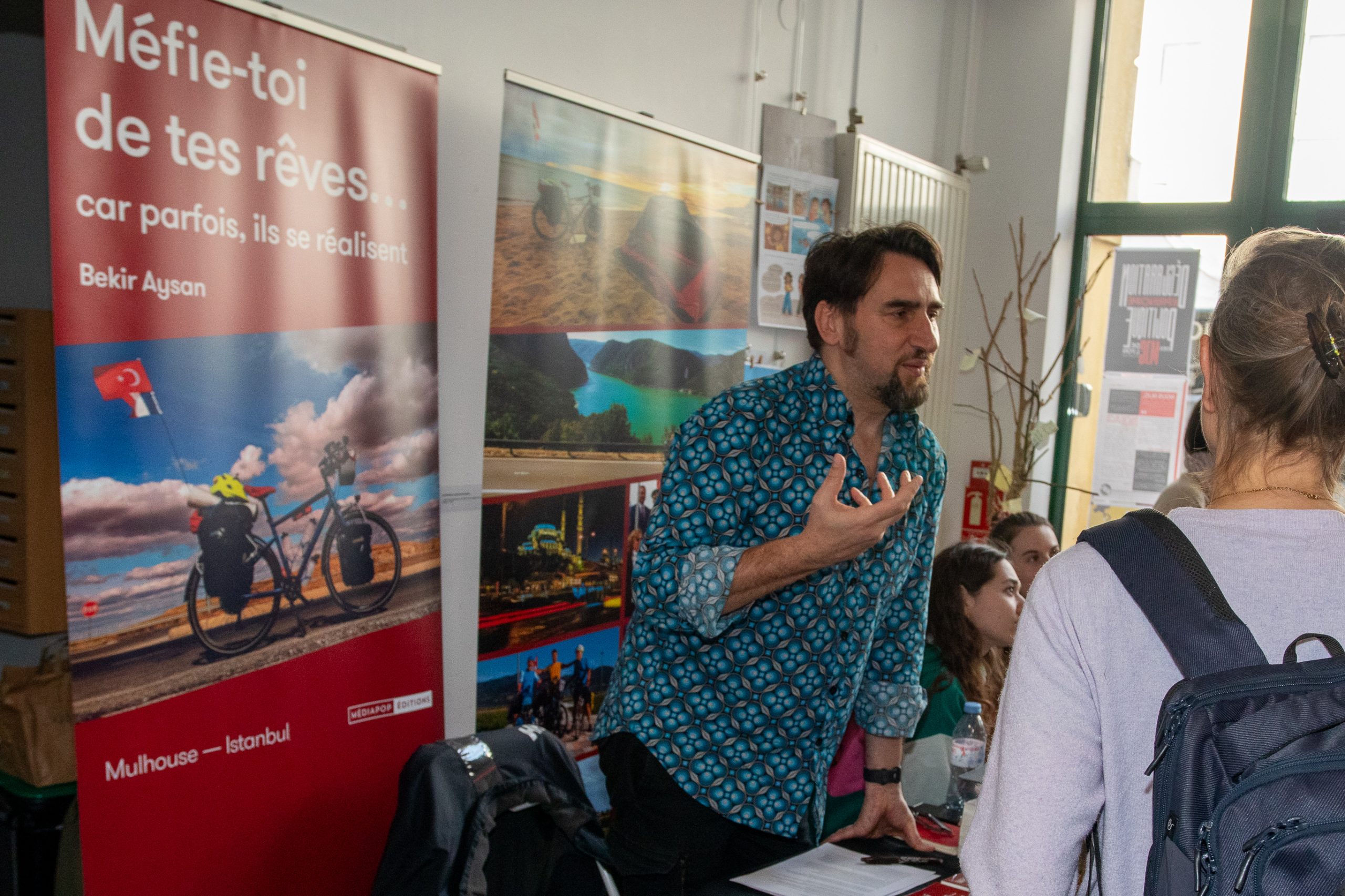 Gérard Bastide, auteur-voyageur prolifique, « polyfaiseur de multichoses » viendra avec quatre ouvrages : la voie cyclique (éd. le Pas d’oiseau), le voyageur est un menteur (éd. Le Pas d’oiseau), L’intrépide centripète à la recherche du centre (éd. Artisans-Voyageurs) et En nous les bêtes (éd. du Larzac).